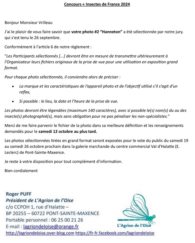 Concours "Insectes de France 2024 - L'agrion de L'oise