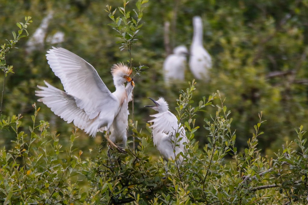 hérons garde boeufs nourrissage