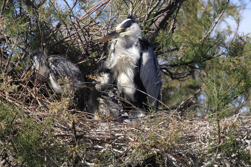 Hérons cendrés, gardes boeufs, hérons pourprés