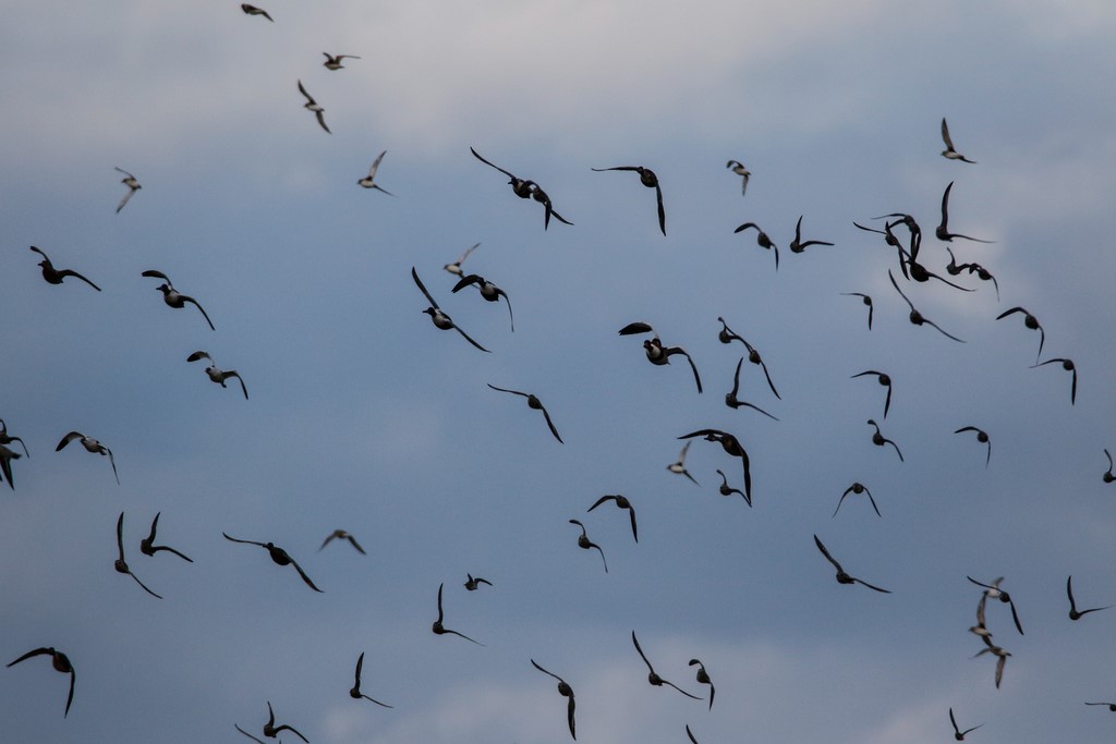 tadornes et souchets en vol