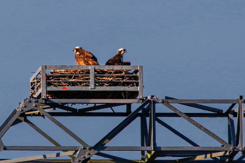 Balbuzards pêcheurs sur pylône EDF